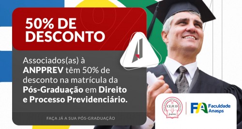 Associados(as) à ANPPREV têm 50% de desconto na matrícula da Pós-Graduação em Direito e Processo Previdenciário